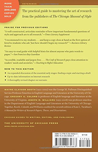Description : Title: Craft of Research <>Binding: Paperback <>Author: Wayne C Booth <>Publisher: University of Chicago Press